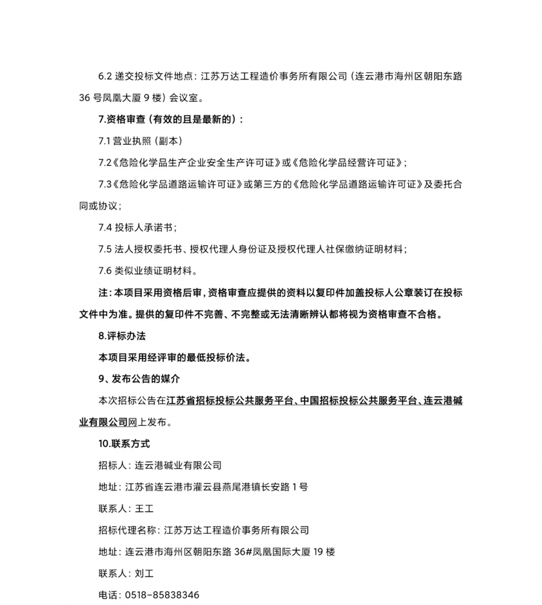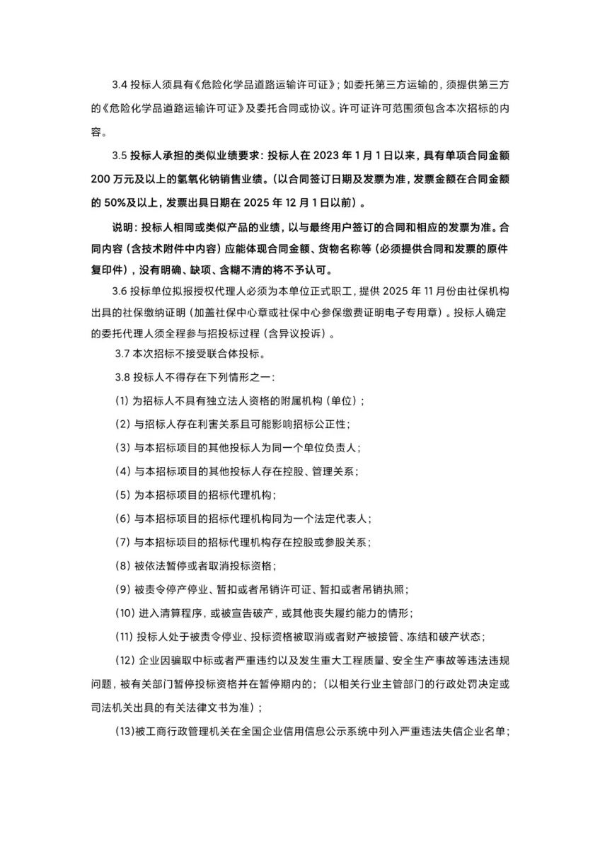 連云港堿業(yè)有限公司化工輔料氫氧化鈉采購招標公告