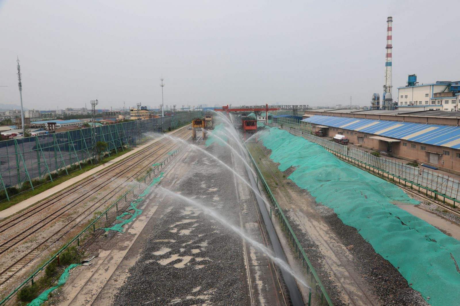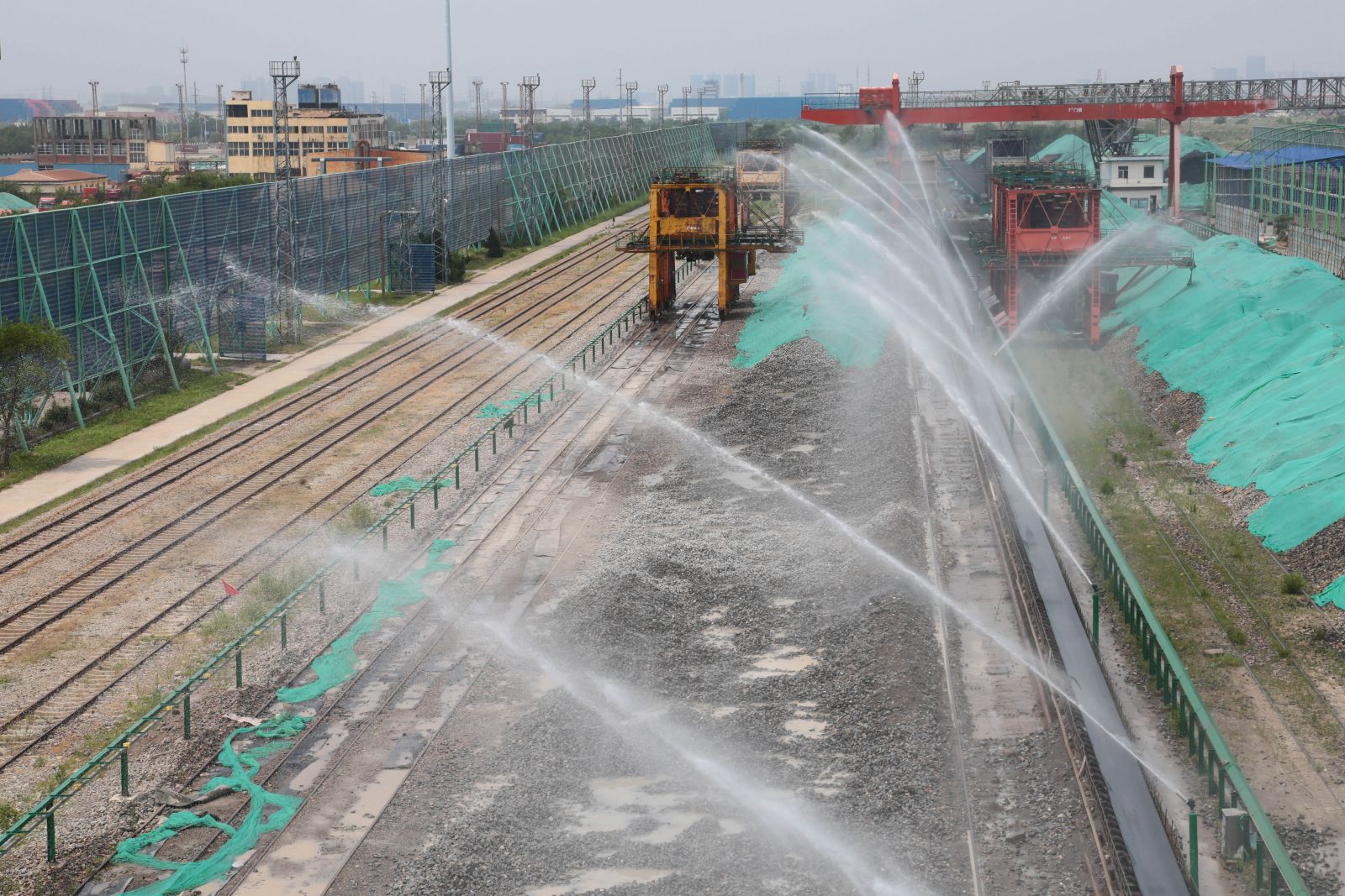 6月12日,公司定時(shí)開(kāi)啟噴淋裝置,一排排的水幕準(zhǔn)確的覆蓋在原料場(chǎng)地存放的石灰石、焦炭和原煤堆上,消除裝卸作業(yè)時(shí)粉塵飄散對(duì)周邊環(huán)境的影響。這是公司積極落實(shí)市委市政府開(kāi)展的降塵治車、保衛(wèi)藍(lán)天行動(dòng)的一種舉措。公司主動(dòng)作為,對(duì)露天原料堆場(chǎng)進(jìn)行整體覆蓋,每日定時(shí)噴水降塵,確保清潔文明生產(chǎn)。