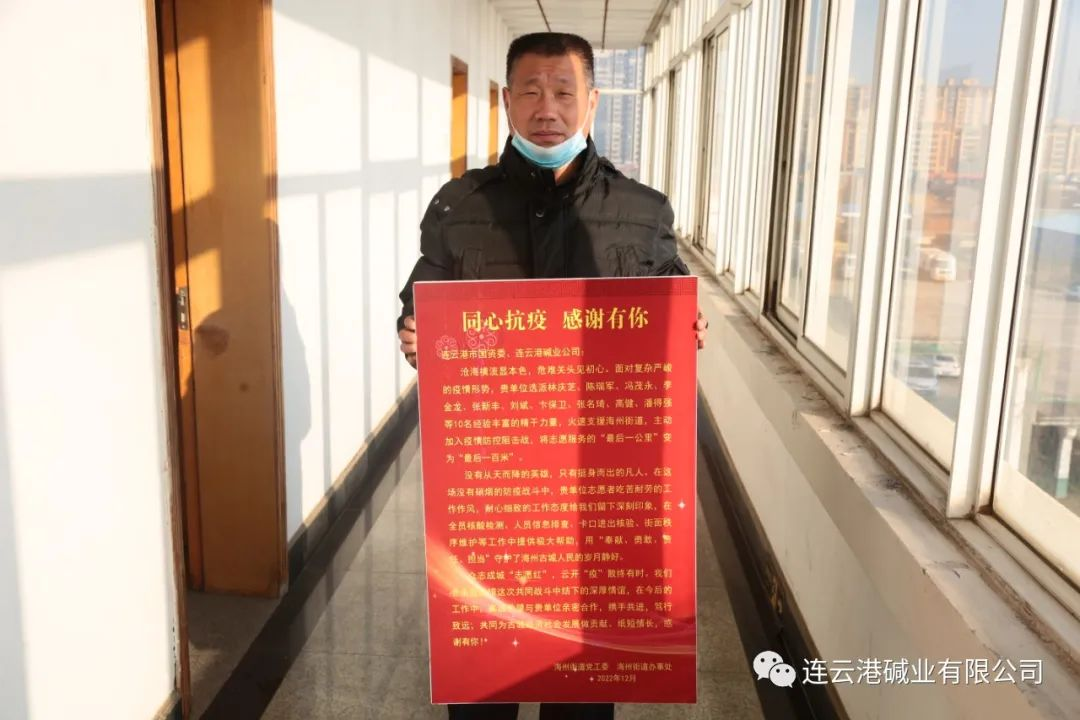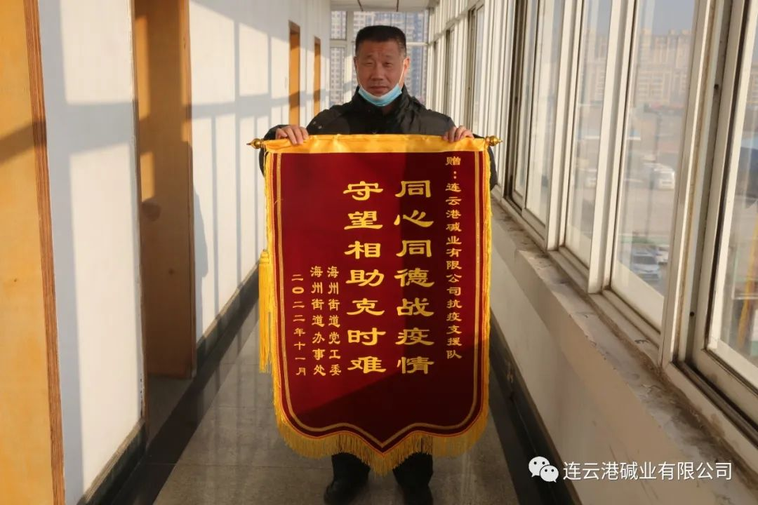 11月份疫情期間,根據(jù)市里統(tǒng)一安排,公司組織抗疫志愿者服務(wù)隊(duì),全身心投入海州區(qū)疫情防控一線。公司職工林慶芝、陳瑞軍、馮茂永、李金龍、張新豐、劉斌、卞保衛(wèi)、張名琦、高健、潘德強(qiáng)等10名職工積極響應(yīng)公司黨委的號(hào)召,投入到社區(qū)志愿者服務(wù)行列,沖鋒在抗疫最前沿,為疫情防控作出了突出貢獻(xiàn)。近日,海州街道黨工委、海州街道辦事處送來(lái)了感謝信以及錦旗。