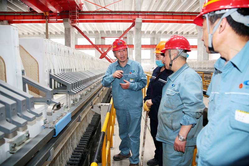 5月16日上午,公司黨委書(shū)記、董事長(zhǎng)張衛(wèi)民,黨委副書(shū)記、總經(jīng)理李清菊,黨委委員、副總經(jīng)理黃建華,黨委委員、副總經(jīng)理焦旺盛等一行到渣處理車間指導(dǎo)工作。
