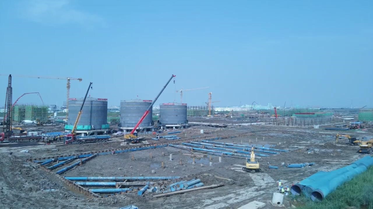 ⑴聯(lián)堿一標(biāo)段101b聯(lián)堿辦公樓屋面女兒墻拆模養(yǎng)護;152中心控制室屋面鋼結(jié)構(gòu)進場,砌體施工;151化驗中心四層支撐架搭設(shè);340機電儀維修廠房鋼結(jié)構(gòu)工廠預(yù)制,砌體施工;510重堿車間V51301A設(shè)備中心筒與溢流箱合攏,氨II澄清桶安裝,母液I澄清桶安裝.管廊基礎(chǔ)防腐回填;532重灰段深基坑回填、水池養(yǎng)護;280b換熱站屋面鋼結(jié)構(gòu)工廠預(yù)制。