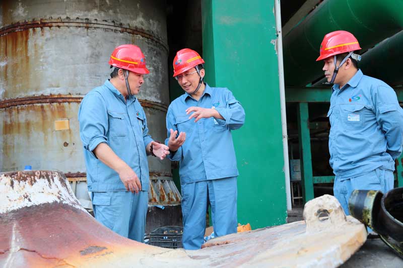 在重堿車間現(xiàn)場(chǎng),張衛(wèi)民囑咐車間負(fù)責(zé)人,在高溫時(shí)節(jié)不僅要抓好生產(chǎn)運(yùn)行,更要注意酷暑天氣下安全管理和員工的身體健康。